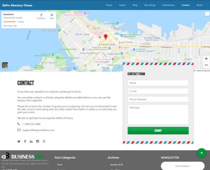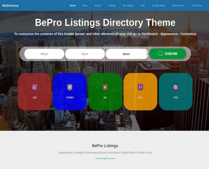 This theme provides various advanced WordPress features like category images. It also utilizes and showcases the various features of the BePro Listings Directory plugin. In this particular demo, we also use other premium features like, enhanced galleries, icons, advanced search, and our famous Form Builder addon.